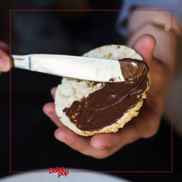- شکلات صبحانه یا نوتلا: رایس کیک برنجی را با یک لایه نازک از شکلات صبحانه یا نوتلا بپوشانید و روی آن میوههای خشک یا مغزیجات خرد شده مانند فندق و پسته اضافه کنید.